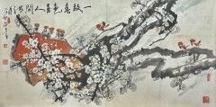 王榮泰 _一枝春色喜人間-梅鳥_ 69x136cm
