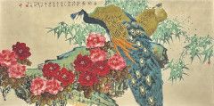 無名 _春韻圖-孔雀與牡丹_ 69x136cm