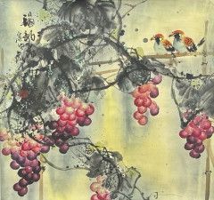 無名 _秋韻B-葡萄與鳥_ 49x52cm