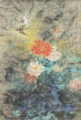 東華 _牡丹與鳥_ 58.5x87.5cm